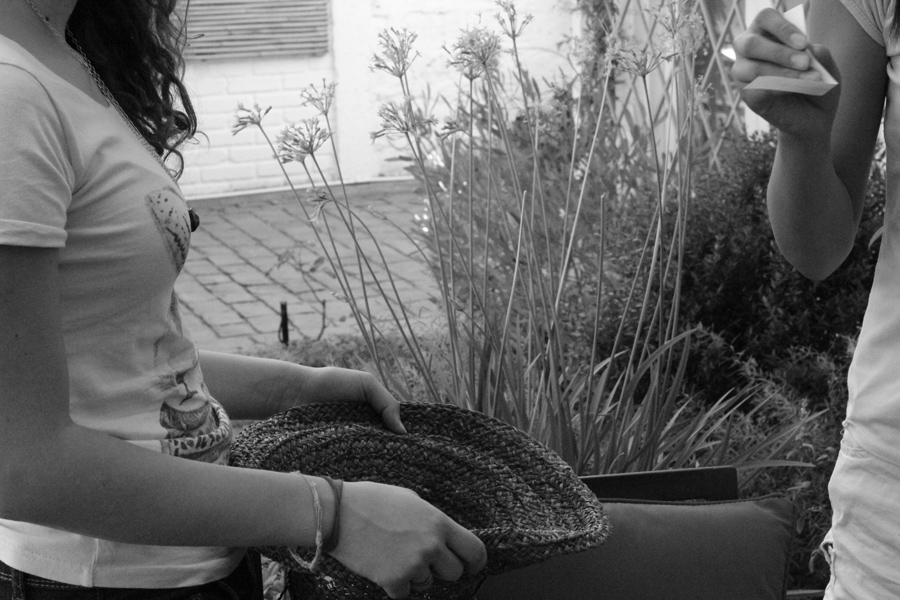 in the process: cutting, folding and finally taking a name out of the hat.